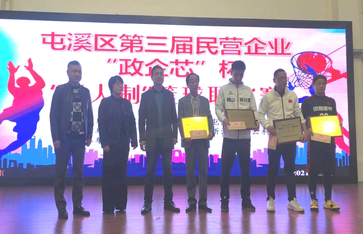 為加強屯溪區(qū)各民營企業(yè)之間的聯(lián)系、交流,積極響應主辦單位屯溪區(qū)委統(tǒng)戰(zhàn)部和屯溪區(qū)工商聯(lián)的要求,2021年11月13日,集團公司組織新洲籃球隊隊員姚駿杰、胡志勇、馮曙朝、李洋和汪程(外援)參加了屯溪區(qū)第三屆民營企業(yè)“政企芯”杯“三人制”籃球聯(lián)誼賽,經過耗時一天7場循環(huán)制比賽,在新洲籃球運動員的勇于拼搏,積極配合和不懈努力下,獲得了籃球聯(lián)誼賽三等獎。