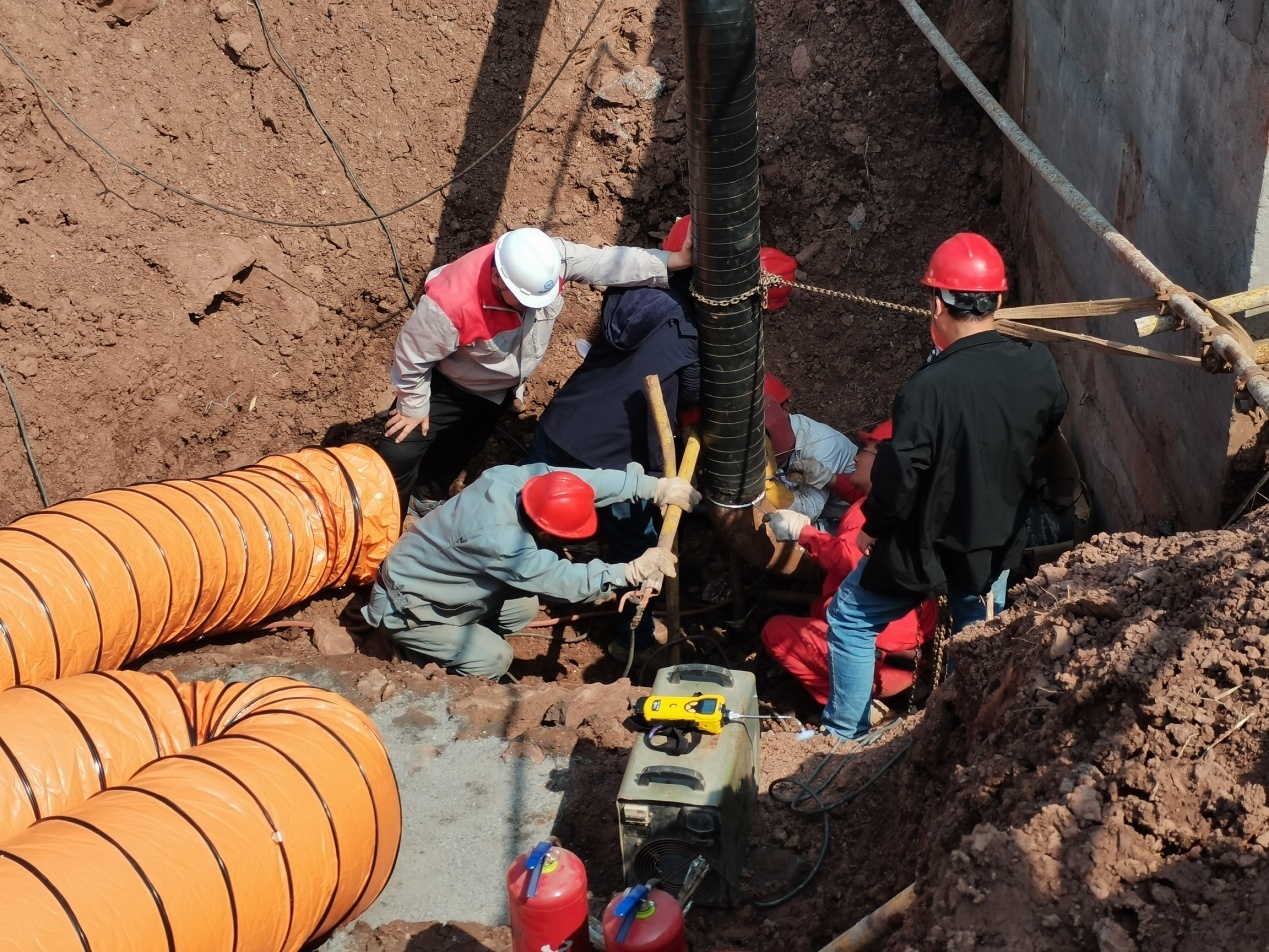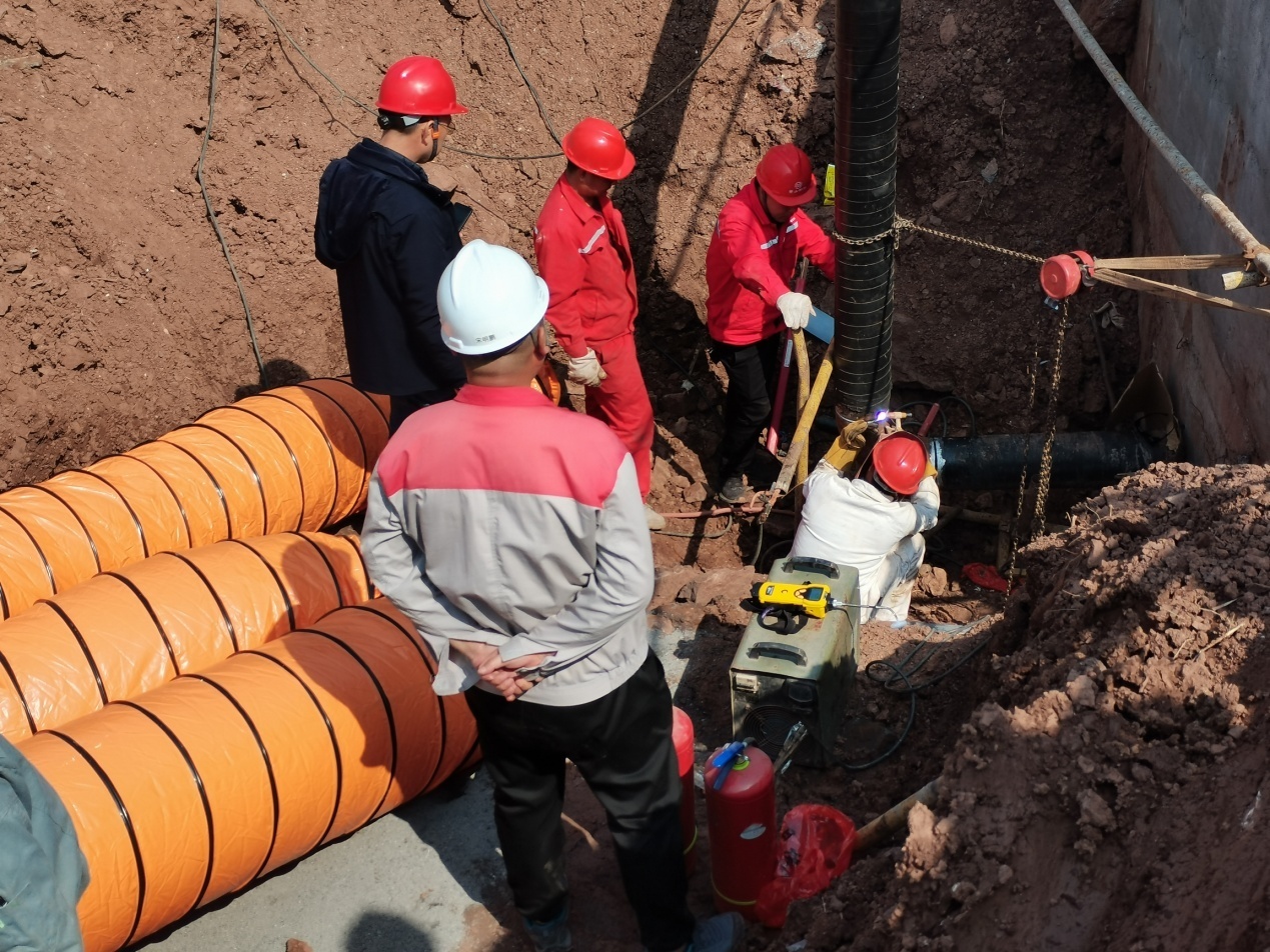 2022年3月3日,施工現(xiàn)場已嚴格按照動火連頭施工方案落實了人員組織、施工警戒區(qū)域、消防安全保證措施等,并在取得特殊動火工作票后,于當天上午9點左右開始施工,施工單位河南萬佳建設工程有限公司、安徽省皖能港華天然氣有限公司、監(jiān)理單位北京華業(yè)恒基工程項目管理有限公司、建設單位黃山綠洲新型建筑材料有限公司、黃山新洲建設集團有限公司等相關單位負責人及領導帶隊堅守一線、嚴密監(jiān)控動火現(xiàn)場、合理調配各項資源。經過全體人員近5個多小時的緊張工作,動火連頭作業(yè)順利結束。這也推動了黃山綠洲新型建筑材料有限公司順利投產的進度。