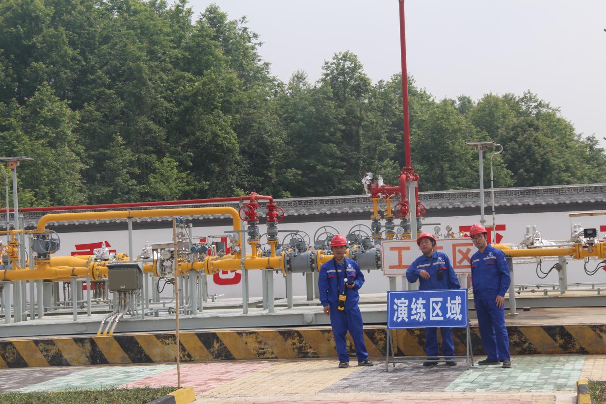 本次演練假想場(chǎng)景為:作業(yè)人員姚基祥在巡檢期間發(fā)現(xiàn)站場(chǎng)有異響,立即查看發(fā)現(xiàn)為調(diào)壓一支路調(diào)壓器法蘭部位泄漏,站場(chǎng)針對(duì)這一突發(fā)事件展開(kāi)一系列應(yīng)急救援處置。