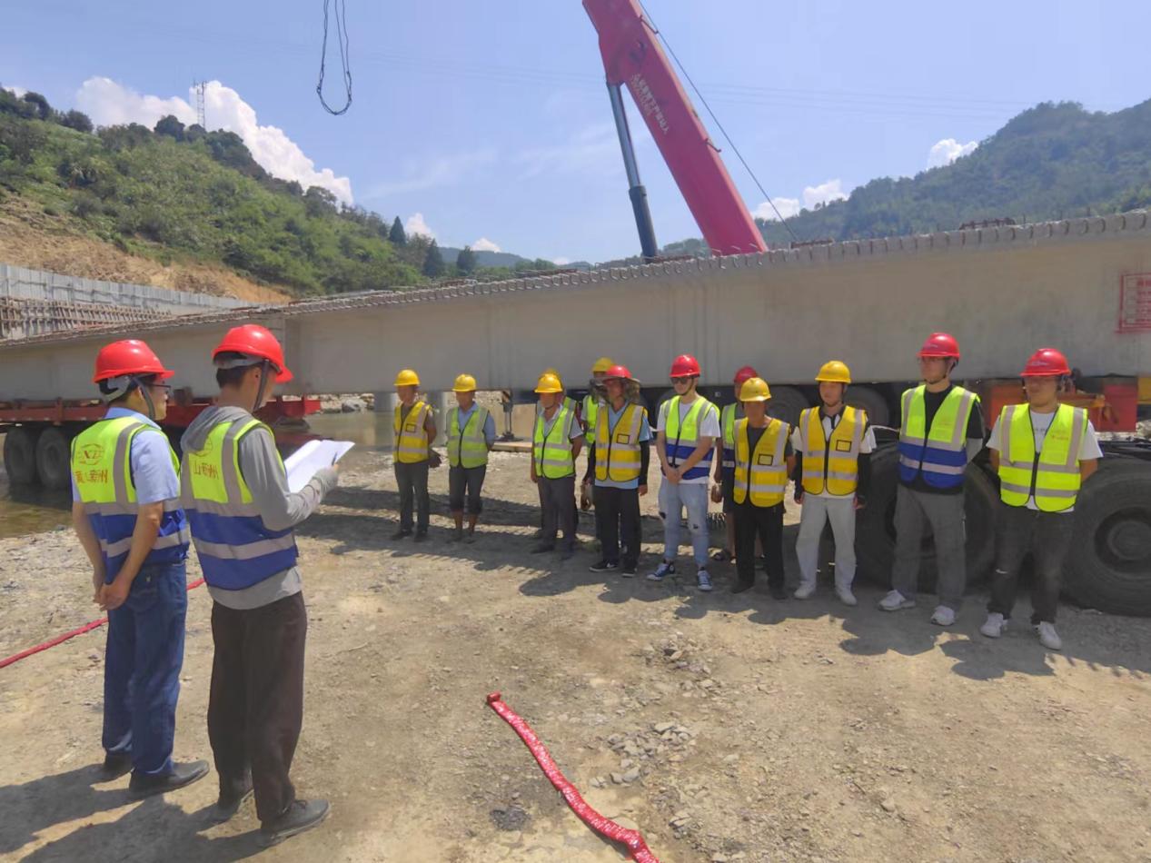 為確保梁板架設(shè)工作順利進(jìn)行,項目部高度重視,精心組織橋梁下部及預(yù)制梁板驗收、專項方案審批,提前安排隊伍進(jìn)場,熟悉施工環(huán)境和技術(shù)方案,對梁板架設(shè)人員進(jìn)行安全教育培訓(xùn)和技術(shù)交底,并進(jìn)行現(xiàn)場監(jiān)督,嚴(yán)格把控梁板架設(shè)的過程及安全性,全方位保障了架梁工作的順利進(jìn)行。