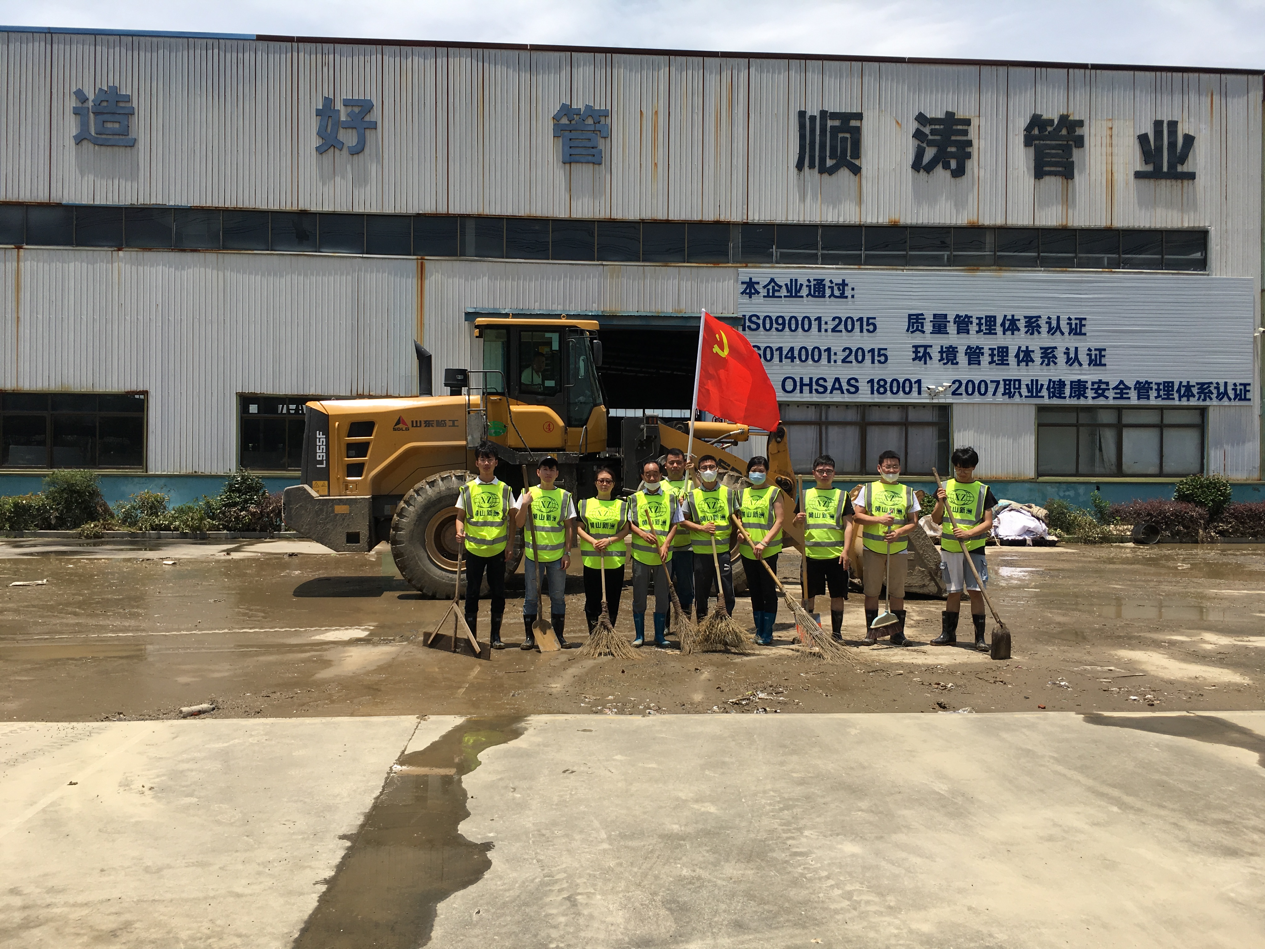 上午8時(shí)許,黃山新洲公司黨員、入黨積極分子、抗洪搶險(xiǎn)志愿者開(kāi)著鏟車(chē)、灑水車(chē)從屯溪區(qū)出發(fā)到達(dá)歙縣經(jīng)開(kāi)區(qū)受澇嚴(yán)重的黃山順濤管業(yè)有限公司進(jìn)行衛(wèi)生清掃,先清理垃圾及淤泥,再進(jìn)行集中消毒消殺。烈日炎炎,新洲支部的黨員志愿者們個(gè)個(gè)不怕臟,不怕累,頂著烈日,揮汗如雨。通過(guò)一個(gè)上午的勞動(dòng),在人機(jī)配合下,掃除了垃圾,清除了表面泥土,受災(zāi)企業(yè)的工作環(huán)境煥然一新。