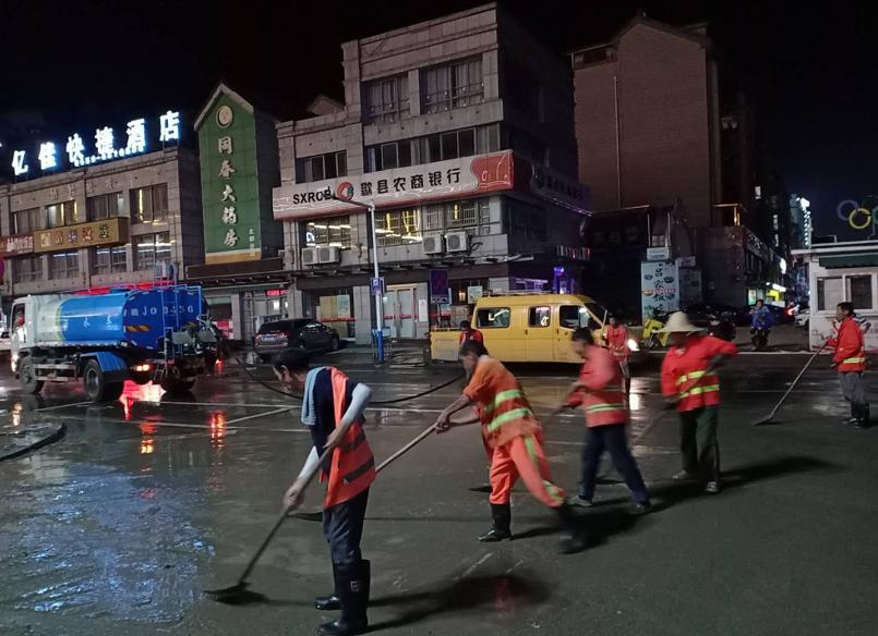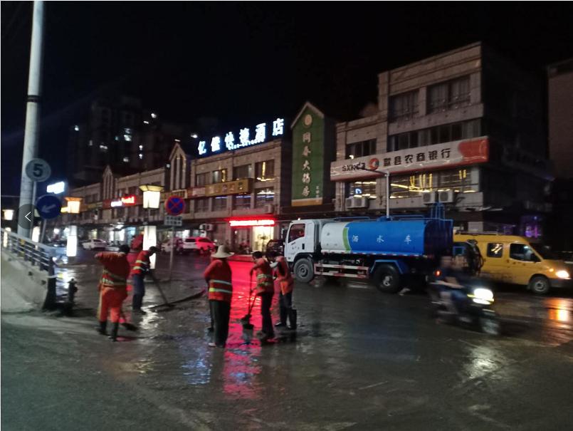 庚子多災(zāi)難,疫情甫定,洪水又來。近日,歙縣遭遇入汛以來最強(qiáng)降雨,洪水倒灌圍城、高考延期。大雨侵襲后,洪水雖已退去,但遍布各種垃圾、雜物和淤泥的城市道路、廠房仍舊一片狼藉,災(zāi)后重建任務(wù)艱巨。7月11日上午,集團(tuán)公司緊急組織2個班組20多個施工作業(yè)人員,投入4臺灑水車、3臺裝載機(jī)支援災(zāi)后重建工作。