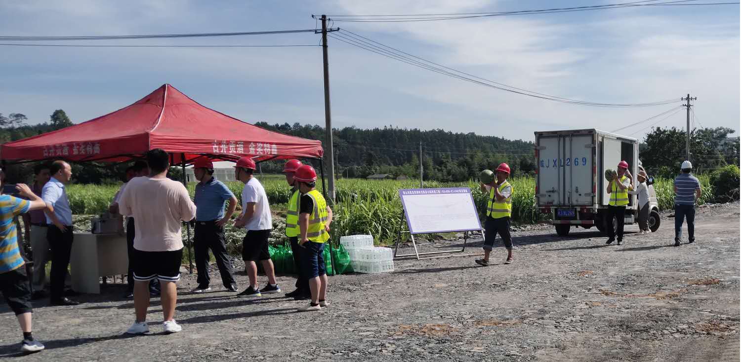 進(jìn)入8月以來,持續(xù)高溫,熱浪襲人,但工程施工指揮部、監(jiān)理及集團(tuán)公司廣大員工不畏困難,戰(zhàn)高溫、斗酷暑,依舊堅守崗位。8月4日上午,歙縣縣長吳旭光及歙縣總工會會長帶隊深入歙黟路(K0+000-K1+346)施工現(xiàn)場,看望、慰問奮戰(zhàn)在高溫一線的廣大員工,送去防暑降溫慰問品。