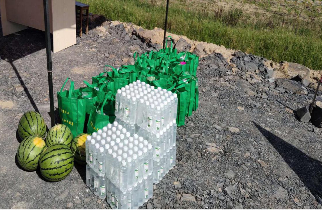 在慰問現(xiàn)場,領(lǐng)導(dǎo)們詢問了生產(chǎn),生活情況,向他們不畏高溫、 冒著酷暑仍然堅守在工作崗位上表示感謝,并叮囑廣大員工一定要把安全放在第一位,同時囑咐大家在現(xiàn)場要多注意飲水,合理安排時間,注重勞逸結(jié)合。同時要求項目經(jīng)理一定要根據(jù)天氣情況合理安排施工,落實(shí)好高溫防護(hù)活動及應(yīng)對措施,把員工的疾苦放在心上,開展好積極應(yīng)對高溫天氣給工作帶來的困難與不便,確保工程建設(shè)各項工作有條不紊地進(jìn)行。此舉深深感動和鼓舞了現(xiàn)場施工人員,一線員工紛紛表示“ 清涼在口,溫暖在心,我們的干勁更足了,我們一定努力工作保質(zhì)保量完成工程建設(shè)。”