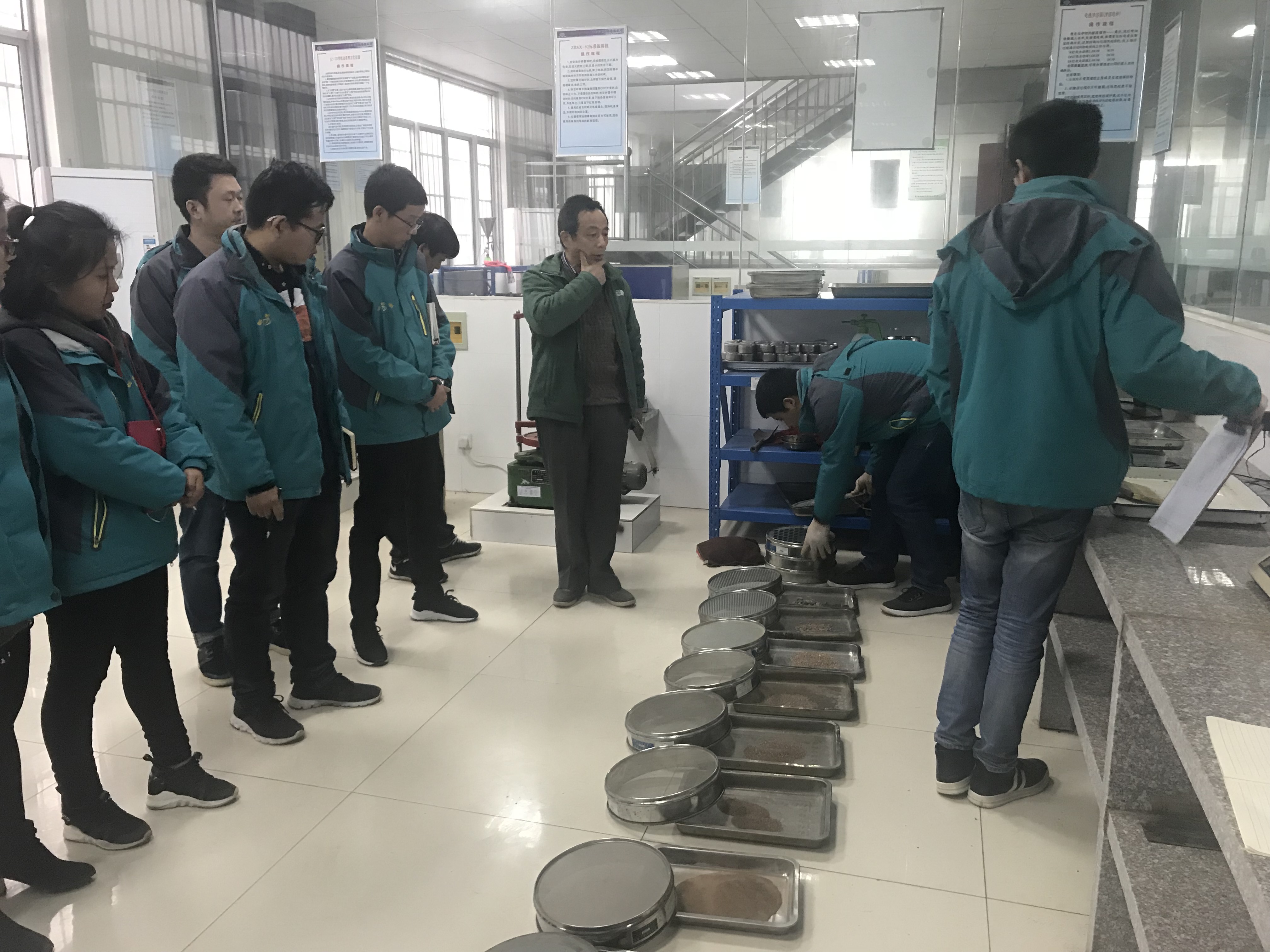 梁老師現(xiàn)場(chǎng)觀摩并指導(dǎo)篩分試驗(yàn)